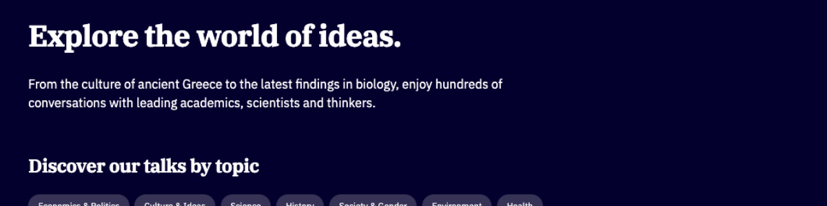 Centinaia di esperti provenienti dalle migliori università del mondo hanno condiviso intense conversazioni. Fedeli alla loro testimonianza e al loro punto di vista, abbiamo trasformato queste conversazioni in video, podcast e articoli che possono essere esplorati e goduti tramite un’app semplice ed elegante.